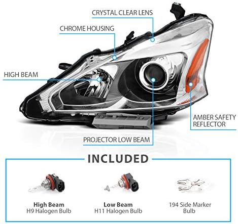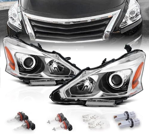 Ideales para Nissan Altima sedán de cuatro puertas entre 2013 y 2015. Proporcionan luz halógena con carcasa cromada moderna. Incluyen el par para conductor y pasajero. Facilitan un reemplazo directo sin modificaciones. Aumentan la seguridad en caminos oscuros con proyección clara.